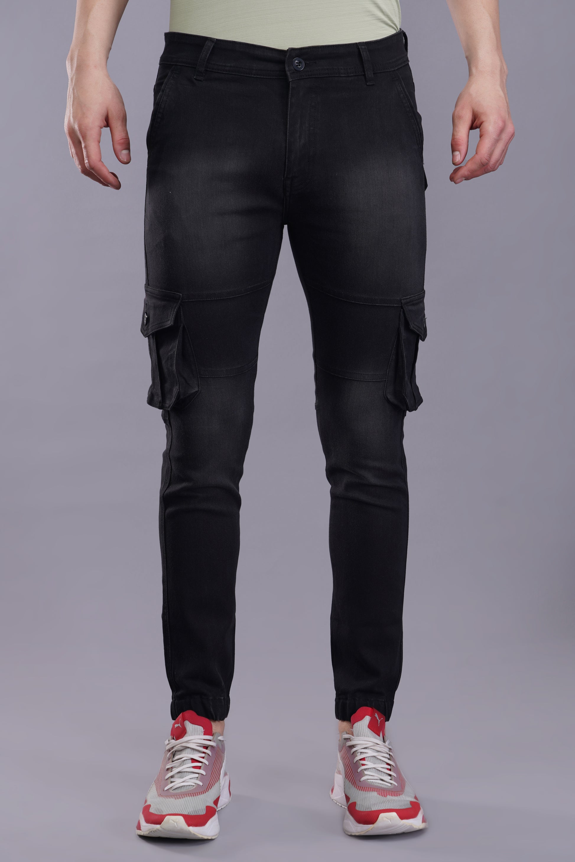 These Men's Denim Cargo jeans are a must-have for any fashion-forward man. Featuring a versatile black color and durable cargo design, these jeans offer maximum comfort with their elastic hems and stretchable fabric. With multiple pockets, you can stay organized while on-the-go. Upgrade your casual wardrobe with these stylish cargo jeans.